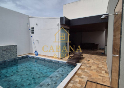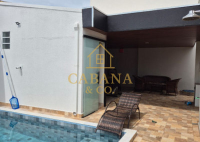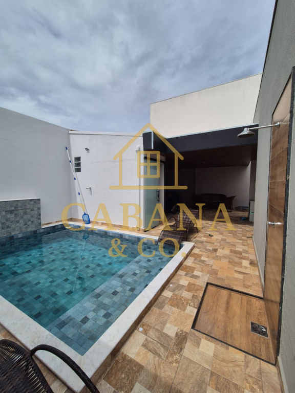 DIVIDE-SE EM 3 DORMITÓRIOS SENDO 01 SUÍTE, SALA DE TV, SALA DE JANTAR, COZINHA REPLATA DE ARMÁRIOS, 3 AR CONDICIONADO, ÁREA GOURMET COM CHURRASQUEIRA, PISCINA AQUECIDA, LED E HIDROMASSAGEM, 02 VAGAS DE GARAGEM COBERTA, WC SOCIAL, BANHEIRO EXTERNO.