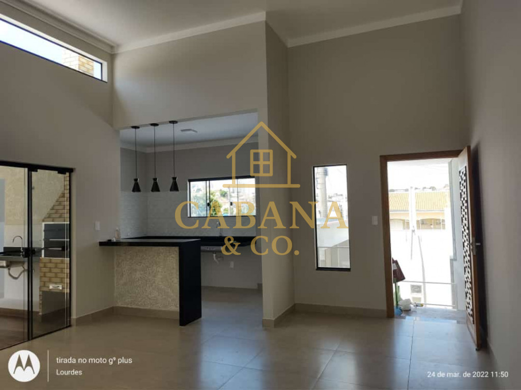 CASA MODERNA COM 3 DORMITÓRIOS SENDO 1 SUÍTE, SALA DE ESTAR COM PÉ DIREITO ALTO, COZINHA COM ARMÁRIOS E GABINETE, LAVANDERIA, ÁREA GOURMET COM CHURRASQUEIRA, GARAGEM COBERTA PARA 2 CARROS, CASA TODA COM ÓTIMOS ACABAMENTOS.