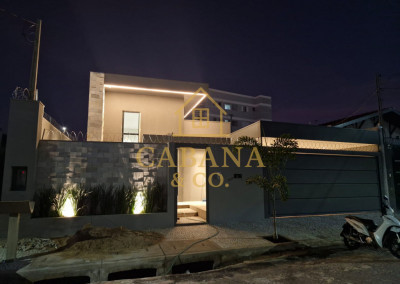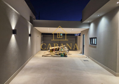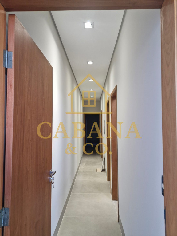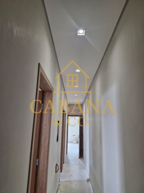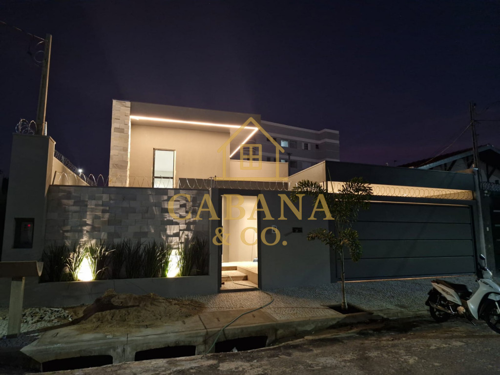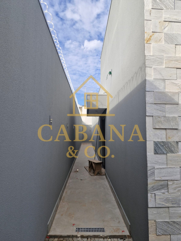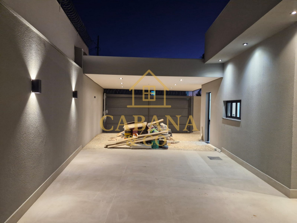 Destaques do imovel: 3 dormitorios, sendo 1 suite. Sala com pe direito alto. Cozinha gourmet com churrasqueira e moveis planejados. Lavanderia separada. Revestimentos em porcelanato Villagres Copan Silver (interno e externo). Agua quente (aquecimento solar) nos chuveiros e torneira da cozinha. Possui 2 caixas d'agua de 1000L e 1 boiler de 400L. Iluminacao em LED. Garagem coberta para 2 caminhonetes. Quintal amplo com area verde (espaco para ate mais 4 carros). Portao eletronico. Concertina em todos os muros. Esquadrias em aluminio Gold e Suprema. Pintura externa emborrachada e imovel totalmente impermeabilizado.