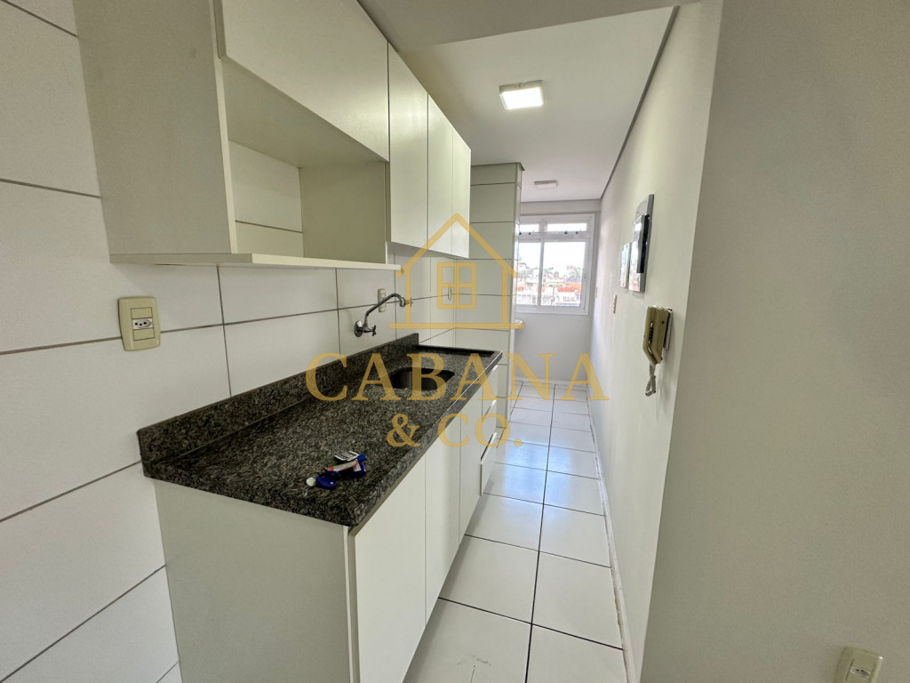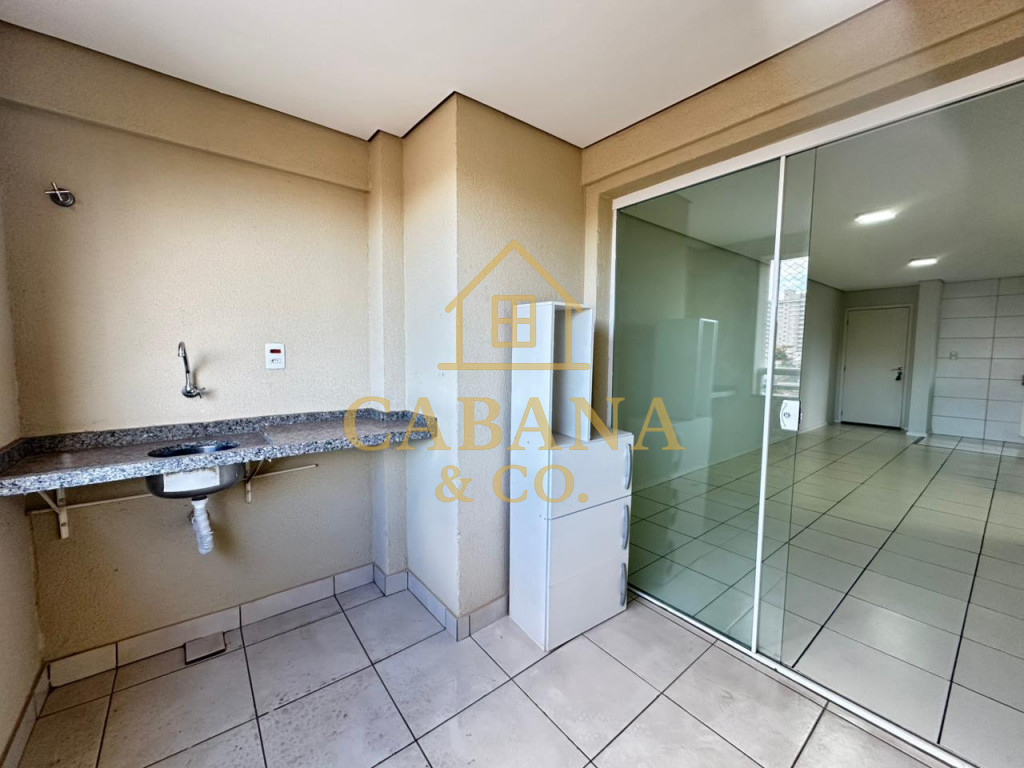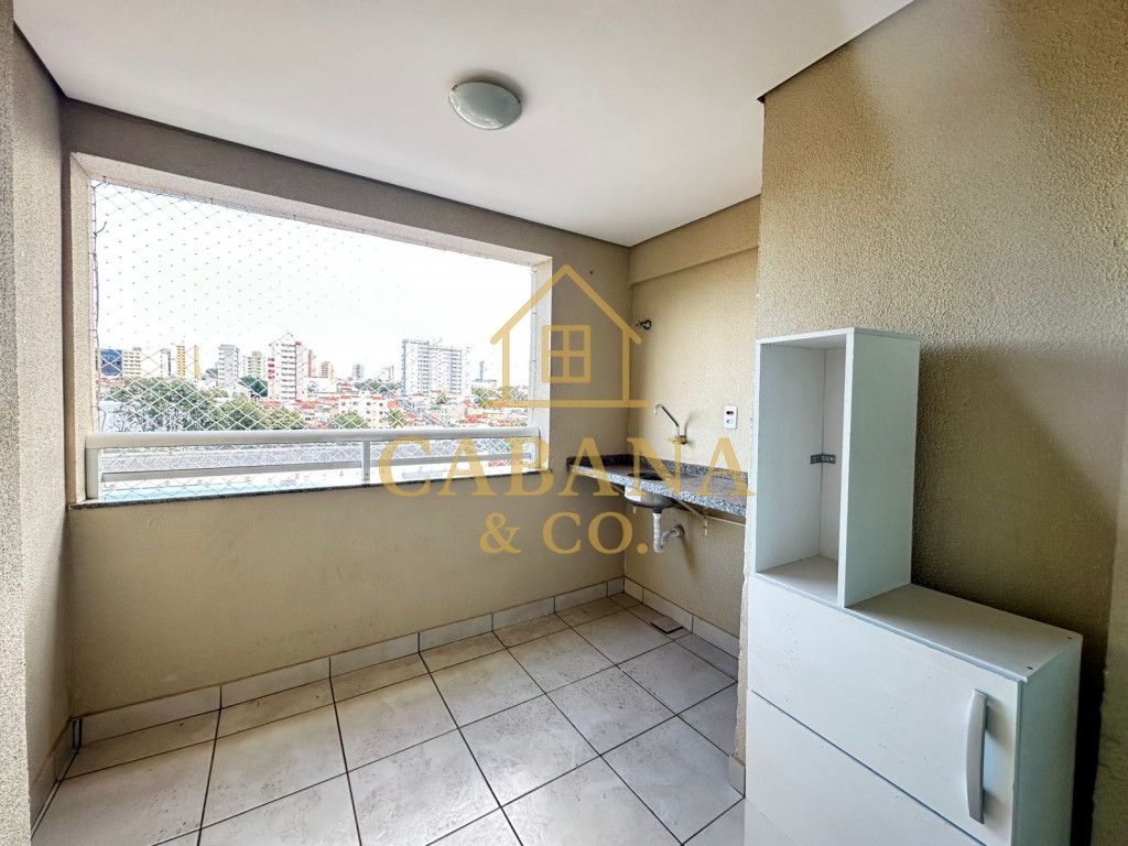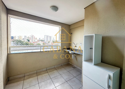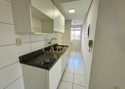 Possui 2 dormitórios, sendo 1 suíte, sala ampla para dois ambientes com sacada, cozinha com armários planejados, área de serviço independente e banheiro social. Conta ainda com 1 vaga de garagem coberta.