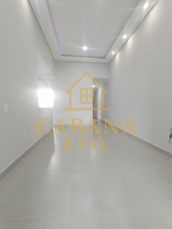 DIVIDE-SE EM 2 DORMITÓRIOS, SALA DE ESTAR COM PÉ DIREITO ALTO E SANCA EM GESSO, ILUMINAÇÃO EM LED, WC SOCIAL, ÁREA GOURMET COM CHURRASQUEIRA, QUINTAL AMPLO NO FUNDO, GARAGEM COBERTA PARA DOIS CARROS.