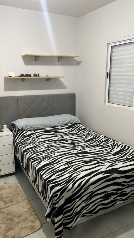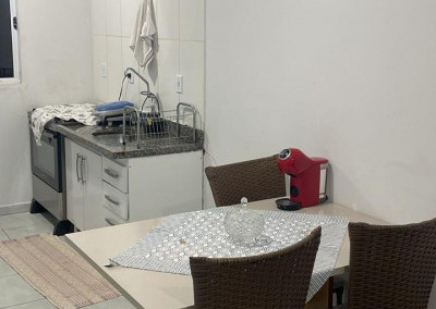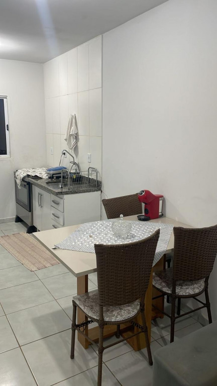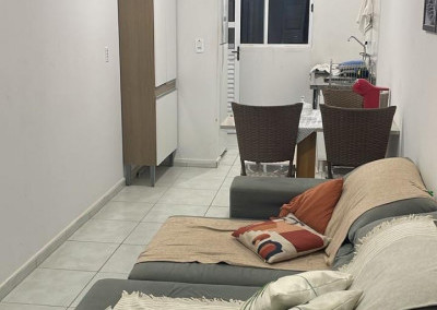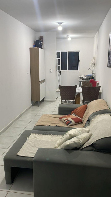2 dormitórios, sala de estar, cozinha, wc social, área de serviço, quintal nos fundos, 2 vagas de garagem.